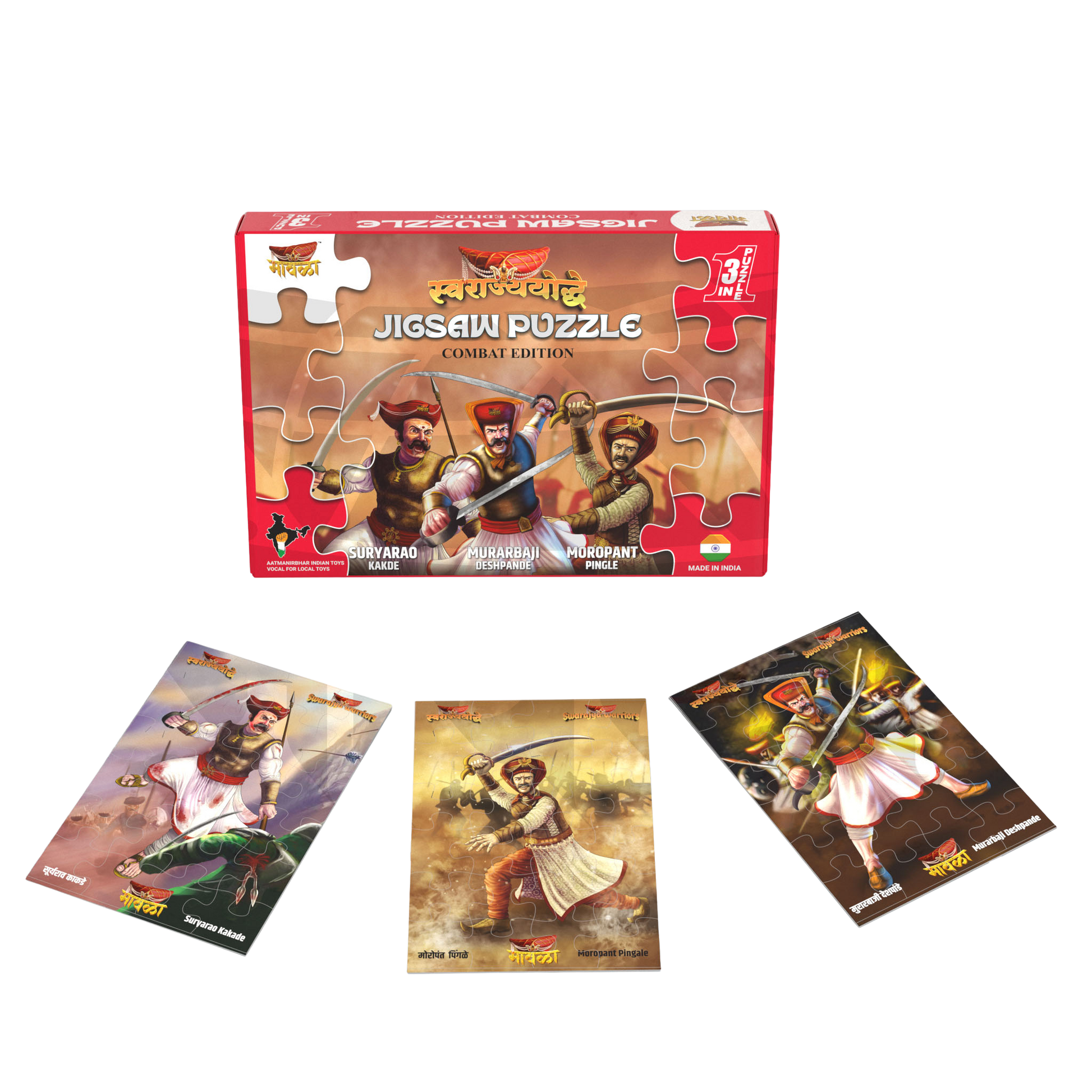 Crafted with high-quality materials, this puzzle includes warrior images and information available in three languages, ensuring accessibility for everyone. Perfect for both children and adults, the Mawala Jigsaw Puzzle - Combat Edition offers an engaging way to learn about Indian heritage. Order your puzzle today and embark on a journey of learning and discovery!