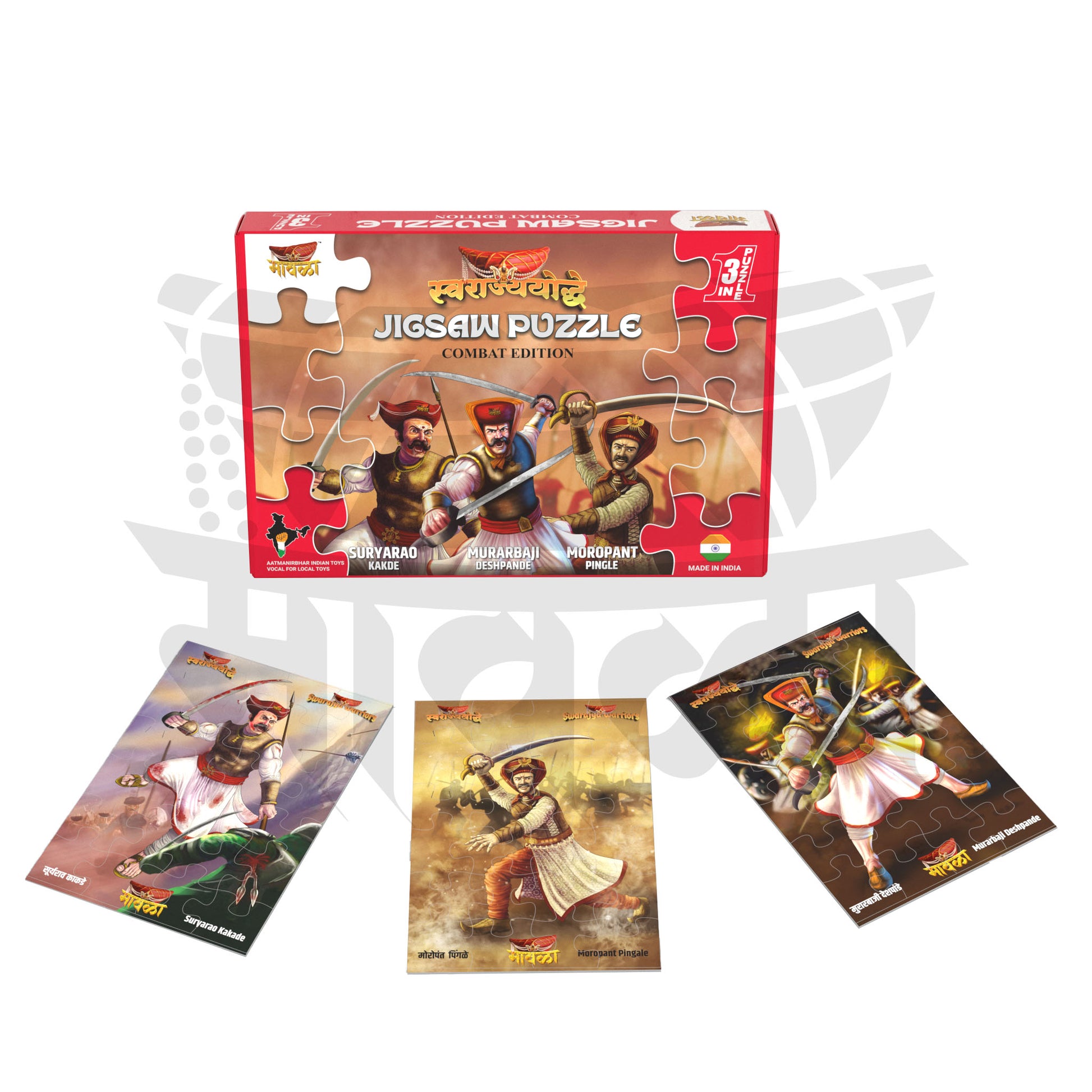 The Mawala Jigsaw Puzzle - Combat Edition, designed to unleash the warrior within while enhancing concentration and learning about Maratha heroes. This 24-piece puzzle is part of our sixth installment in the jigsaw puzzle series, making learning both fun and meaningful by featuring inspiring historical figures.